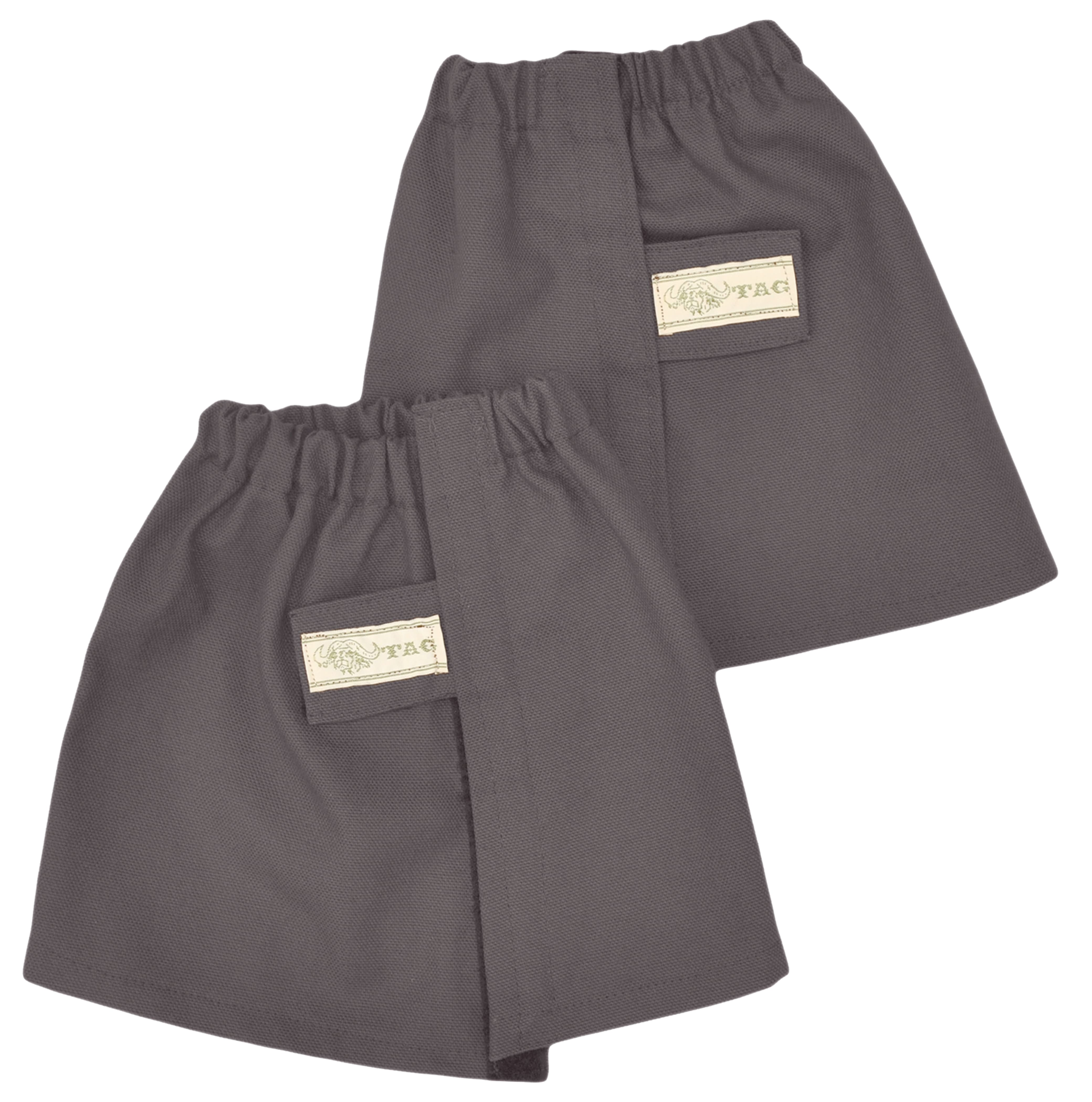 Safari Canvas Gaiters, made from medium weight cotton canvas, are great sock protectors to stop sticklers, sand and stones from entering your hiking boots and making you uncomfortable. The elastic tops keep grass burs from sticking to your shoe laces and making your skin itch. The Velcro in the back makes them easy to put on and take off without removing your boots. Machine washable for convenience and ease of care. These safari canvas gaiters, made in Africa from durable cotton canvas, are just the protection your feet need when hiking and hunting in remote places.